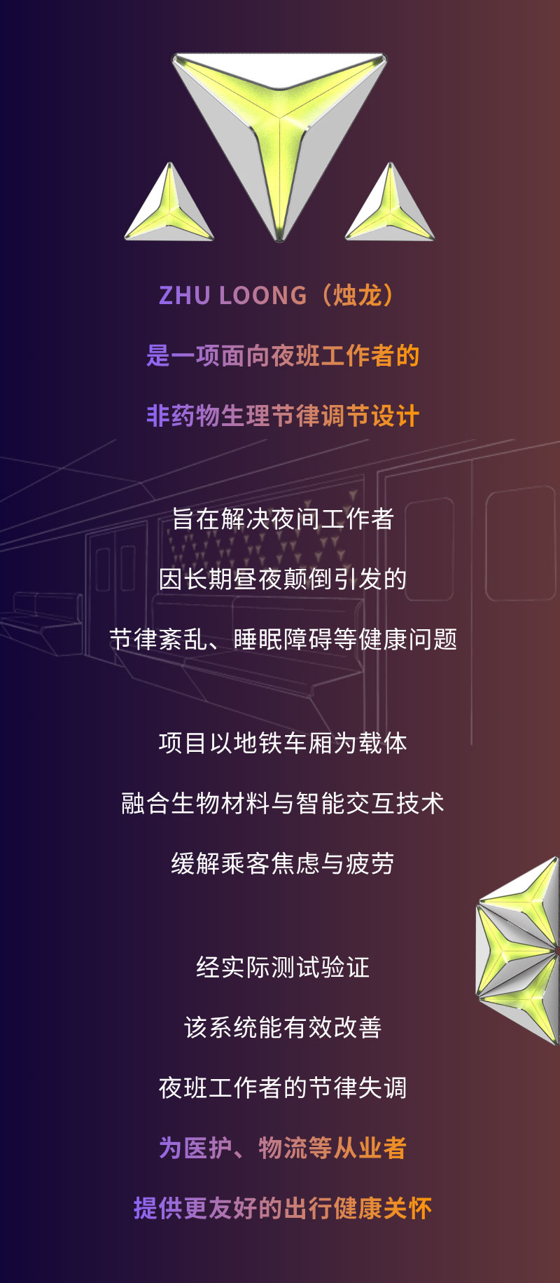 陈冠廷,作品名:ZHU LOONG 地铁舱内节律交互照明装置