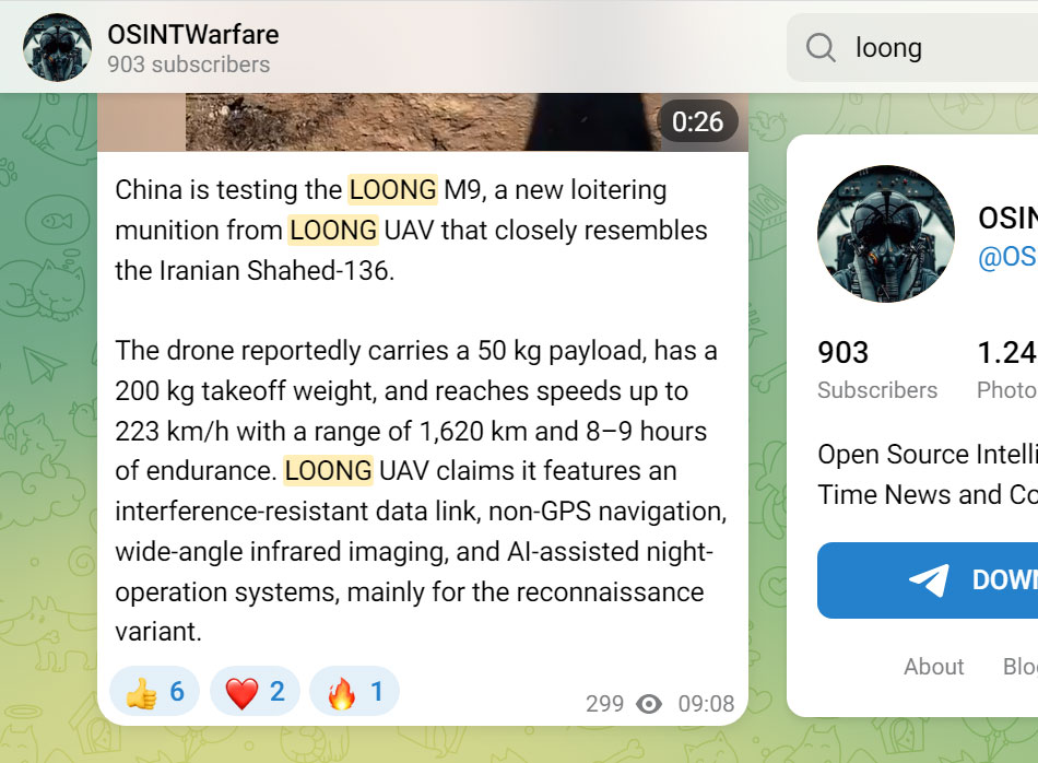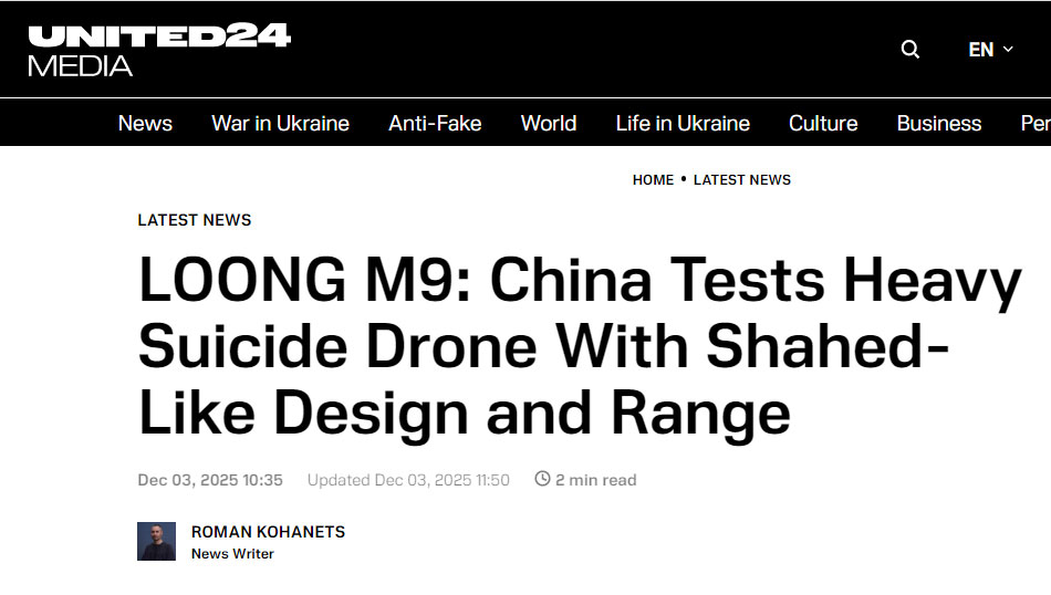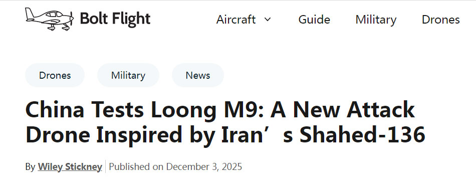 外媒报道中国 Loong M9 无人机试飞消息 LOONG M9 自杀式无人机由中国无人机公司 LOONG UAV 研制,最近进行了测试,一些海外媒体进行了报道。 |
