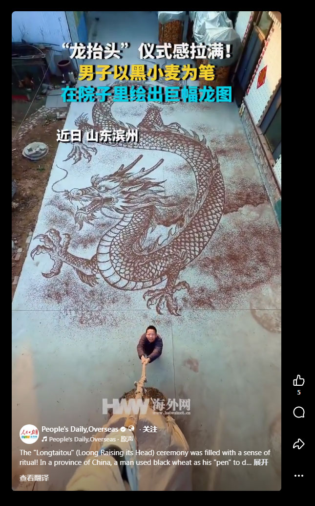 人民日报海外版等把“龙抬头”译为 Loong Raising its Head |